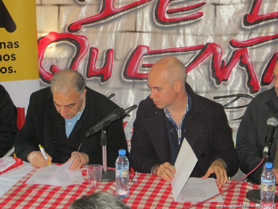 Esta tarde, se firmó el acuerdo entre el Gobierno de la Ciudad de Buenos Aires y el Club Atlético Huracán. En el acto estuvo presente el Jefe de Ministros porteño, Horacio Rodríguez Larreta, y el presidente quemero, Alejandro Nadur. El GCBA se comprometió a colaborar con fondos para mejorar la seguridad del predio a cambio del compromiso del club de brindar acceso al deporte a la población en general, gratuitamente y, en particular, a los socios y simpatizantes de la institución y a la comunidad educativa de la Comuna 7.